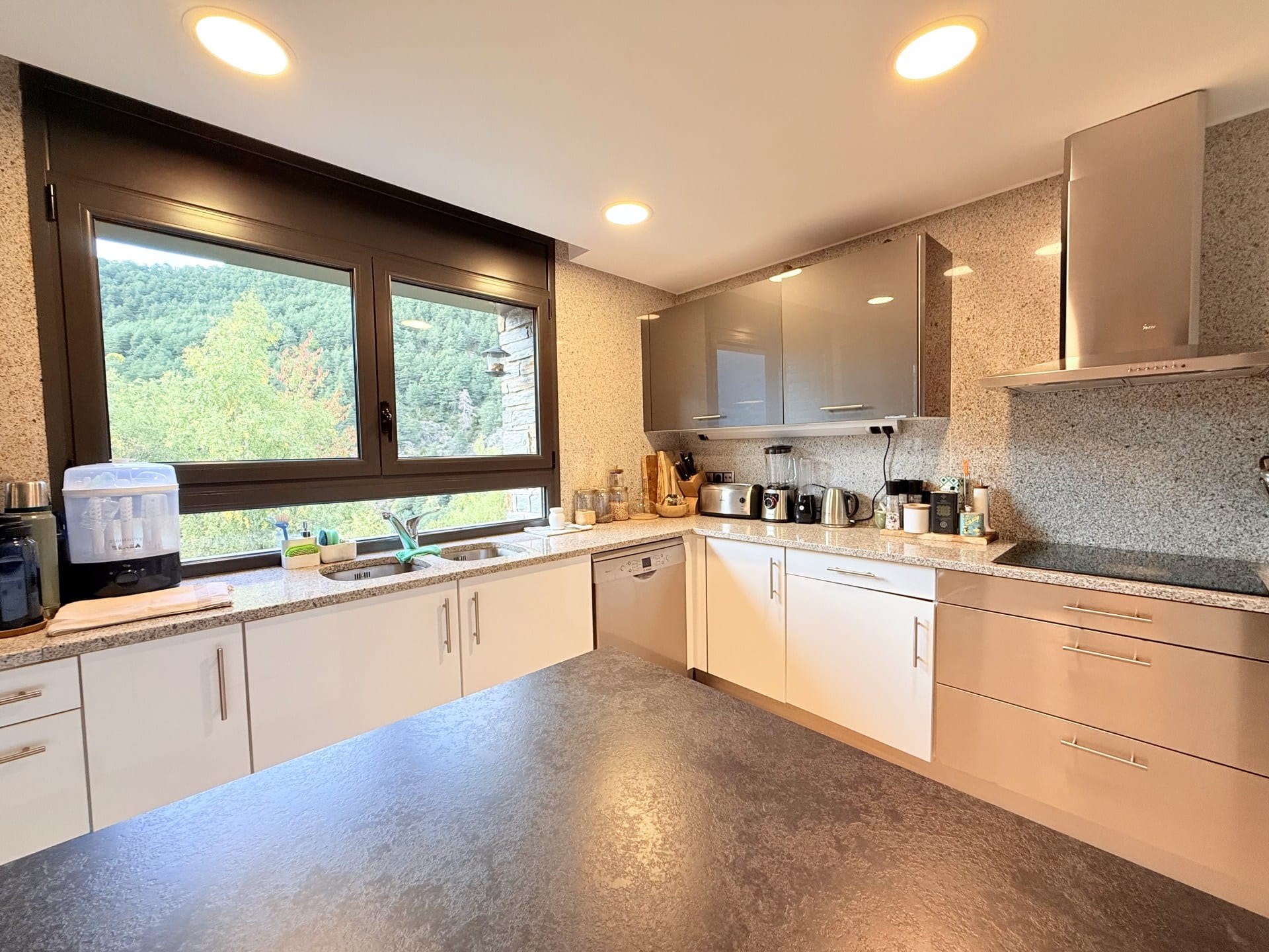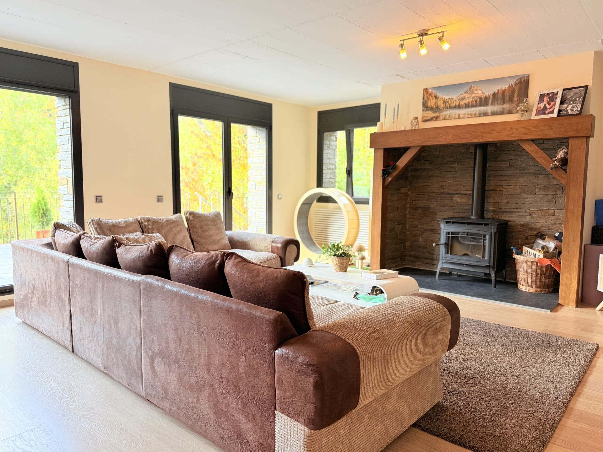 Exclusive chalet in Anyós – Privacy, light, and nature just minutes from the center Located in one of the most exclusive areas of the parish of La Massana, in the quiet residential area of Els Oriosos de Anyós, this magnificent semi-detached chalet is available. A unique property due to its location, sunny orientation, and spacious interior and exterior areas, ideal for those seeking privacy, comfort, and contact with nature, without giving up proximity to key services: just 5 minutes from La Massana and 10 minutes from Andorra la Vella. Built on a 650 m² plot, this three-sided chalet offers a built area of 407 m², distributed over five floors with mezzanines, connected by an elevator and interior staircase. The style combines natural stone on the façades and wood on the upper parts, with slate roofs, giving it a mountain and elegant character. All windows are double-glazed, and the property is in excellent condition. Layout: Entrance floor: Spacious garage and entrance hall. First floor: Four double bedrooms, one of them a suite with private bathroom featuring a shower and whirlpool bathtub. Two bedrooms have balconies with open views, and all include built-in wardrobes. Ground floor: Large kitchen-dining room with access to a 40 m² terrace, ideal for outdoor meals, and laundry area. Semi-basement floor -1: Living room with cast iron wood stove and access to another 49 m² terrace; also includes a full bathroom and storage room. Semi-basement floor -2: Open-plan space with office and direct access to a private garden of over 500 m², perfect for enjoying the sun and tranquility. The chalet features an elevator (6 people / 450 kg), video intercom, aluminum radiators, parquet and tile floors, and high-quality finishes throughout. Outside, the terraces and garden total over 600 m², creating the perfect environment to enjoy the outdoors and breathtaking valley views. An ideal home both as a primary residence and a mountain retreat, where every detail is designed to provide comfort, spaciousness, and well-being.