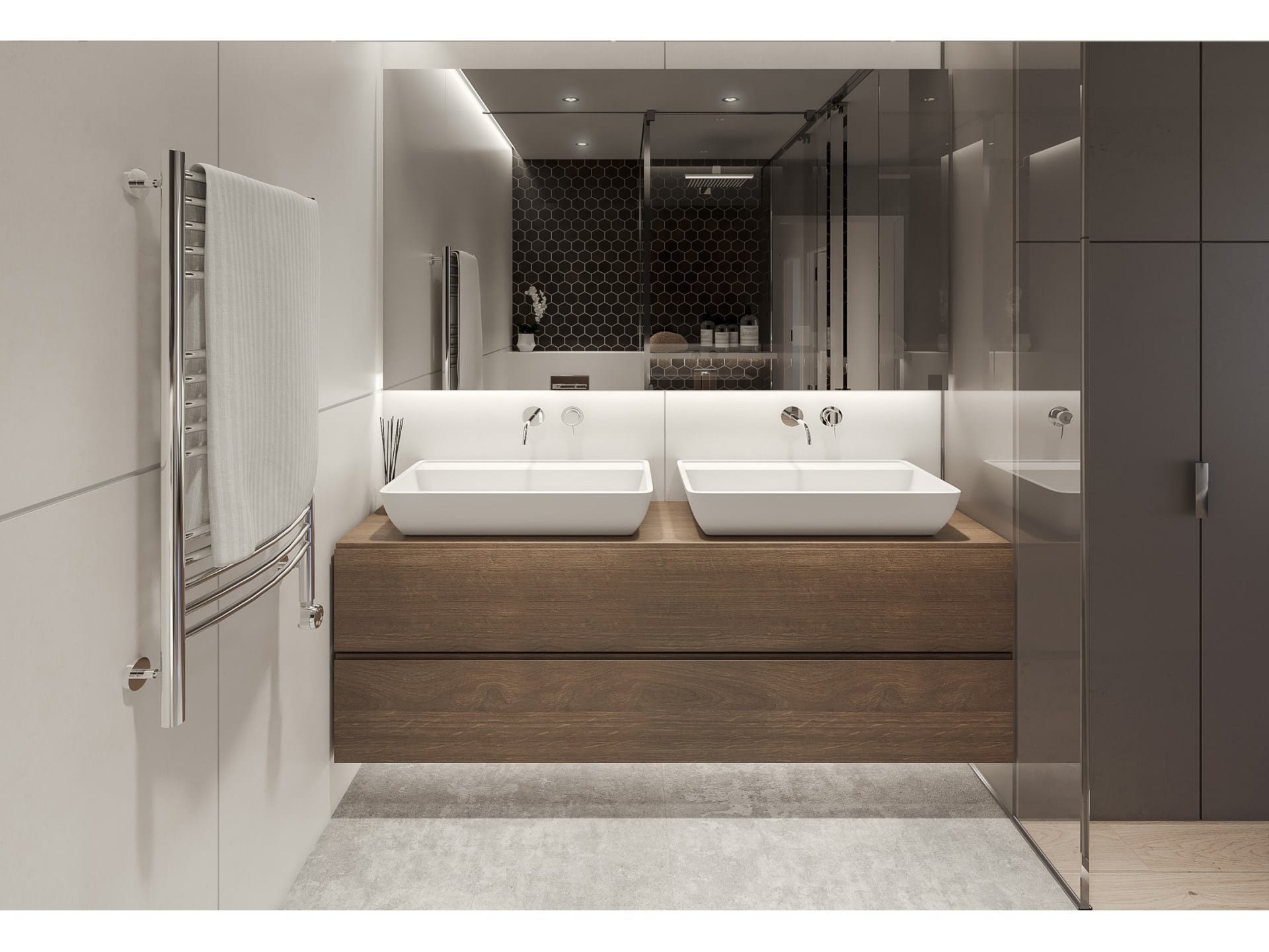 L'espace nuit se compose de 3 chambres doubles extérieures, dont une suite avec sa salle de bain complète avec douche. Les deux autres partagent une autre salle de bain avec douche. Tous disposent de placards de la maison Carrè et d'un accès à la terrasse.
