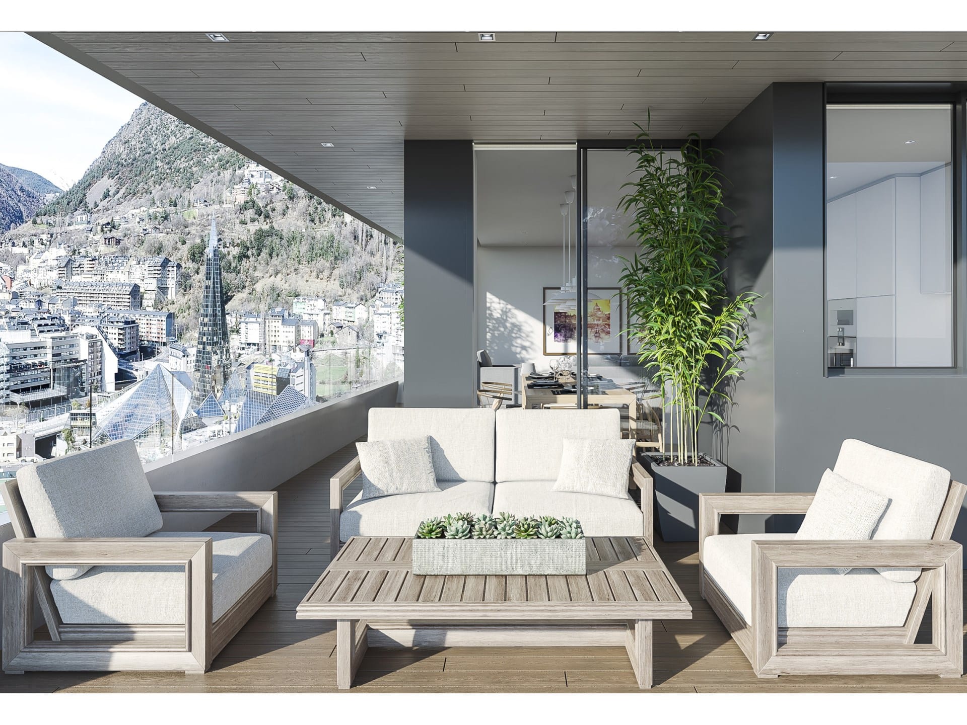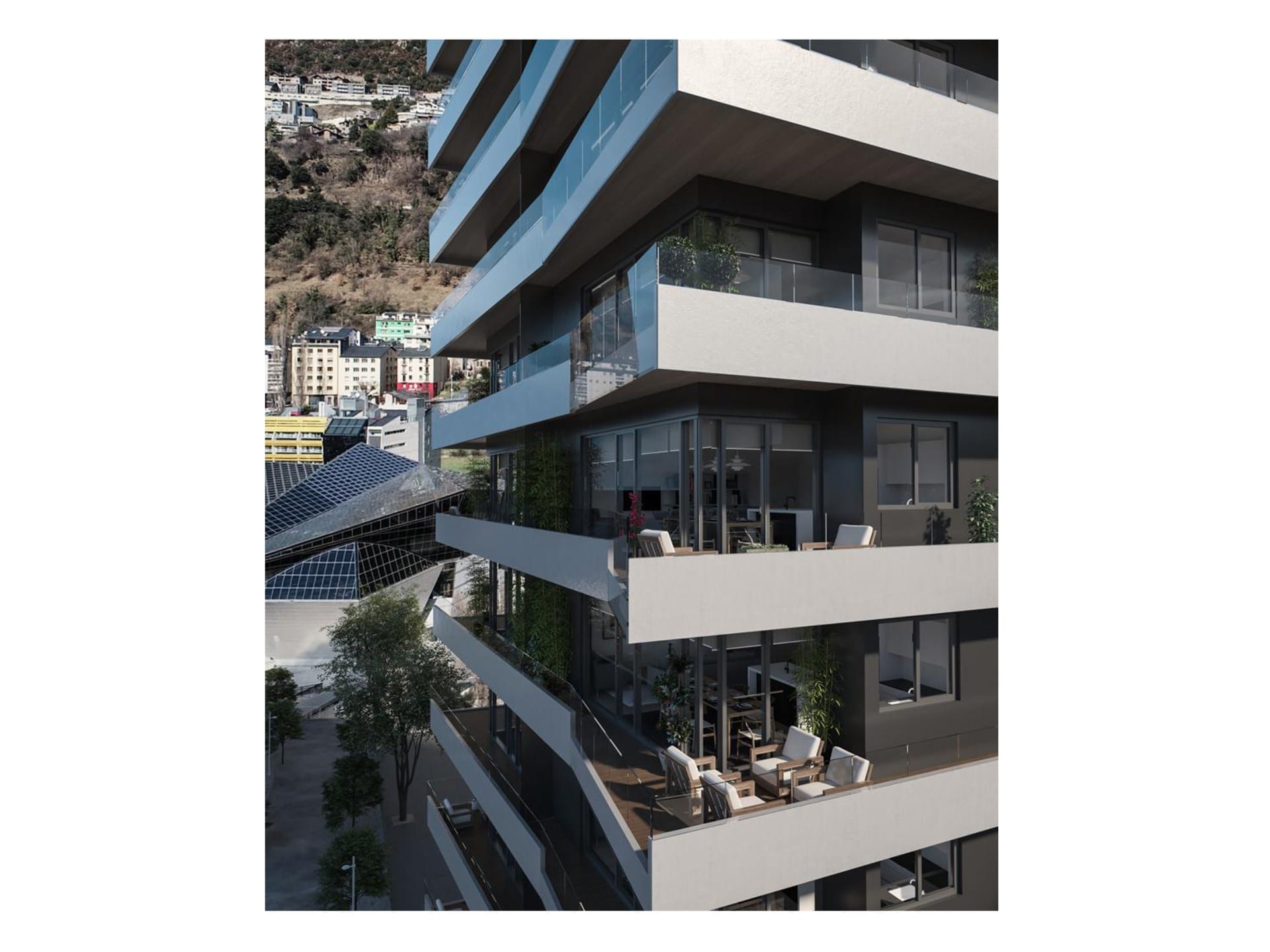 Appartement spectaculaire en construction dans le centre d'Escaldes-Engordany. Spectaculaire appartement de 103,36 m2 + 49,20m2 de terrasse situé dans le centre d'Escaldes-Engordany à quelques mètres de la principale avenue commerciale d'Andorre. Situé dans le majestueux immeuble Les Terrasses, un projet architectural très ambitieux qui aura des finitions de luxe, une situation imbattable à portée de tous les services et vue sur le centre-ville.