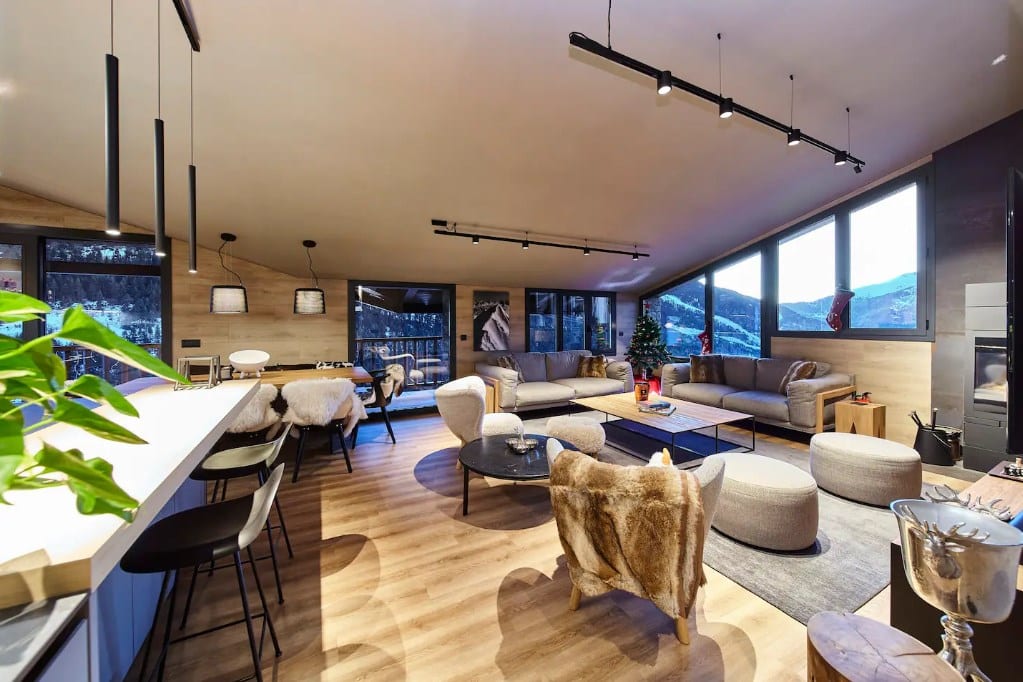 Exclusivo y elegante Ático en Soldeu (Alquiler de abril a noviembre) Disfrute de la inspiración escandinava en el ático más grande del centro del pueblo. El ascensor lo lleva directamente al ático recientemente renovado de un chalet de cinco plantas. Disfrute de las vistas hacia El Tarter e Incles o salga al balcón y siéntase como si fuera parte de la montaña con vistas a las pistas de esquí. Completamente equipado y amueblado con elegancia y diseño unico. Cuenta con una estufa de leña, una cama para perros Fatboy, una sala de estar con cocina abierta muy espaciosa y un balcón grande con sol todo el día. Cuenta con 3 habitaciones dobles, 1 habitación con literas diseñada especialmente para los niños y 4 baños completos. En Soldeu usted puede encontrar variedad de restaurantes y tiendas, farmacia, cafeterías y bares. A sólo 25 minutos del centro de Andorra la Vella y Escaldes-Engordany. Se complementa con una plaza de parking y un trastero.