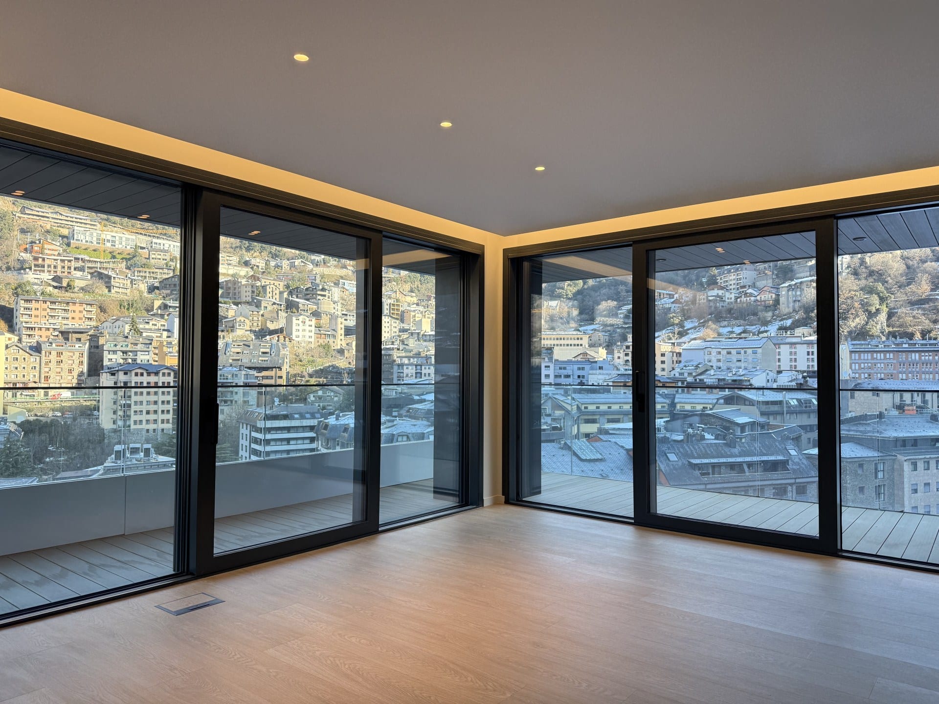 Exclusivo apartamento de obra nueva en Terrasses d’Emprivat – Escaldes-Engordany Se alquila magnífico apartamento de obra nueva situado en el prestigioso edificio Terrasses d’Emprivat, en pleno corazón de Escaldes-Engordany, con todos los servicios, comercios y zonas de ocio a pocos pasos. La vivienda dispone de 105 m² construidos y se complementa con una espectacular terraza de 47 m², desde la cual se disfrutan de agradables vistas a la montaña. Gracias a su triple orientación este, norte y oeste, el piso goza de una excelente luminosidad durante todo el día. El apartamento se distribuye en 3 habitaciones dobles con armarios empotrados, 2 baños completos (uno de ellos en suite), un amplio y luminoso salón-comedor con cocina abierta, de diseño moderno y funcional, y un práctico lavadero independiente. Incluye 2 plazas de parking y un trastero, aportando un plus de comodidad y espacio de almacenaje. Una vivienda ideal para quienes buscan confort, diseño y una ubicación privilegiada, en un entorno tranquilo y con excelentes conexiones.