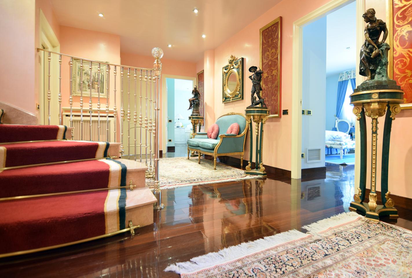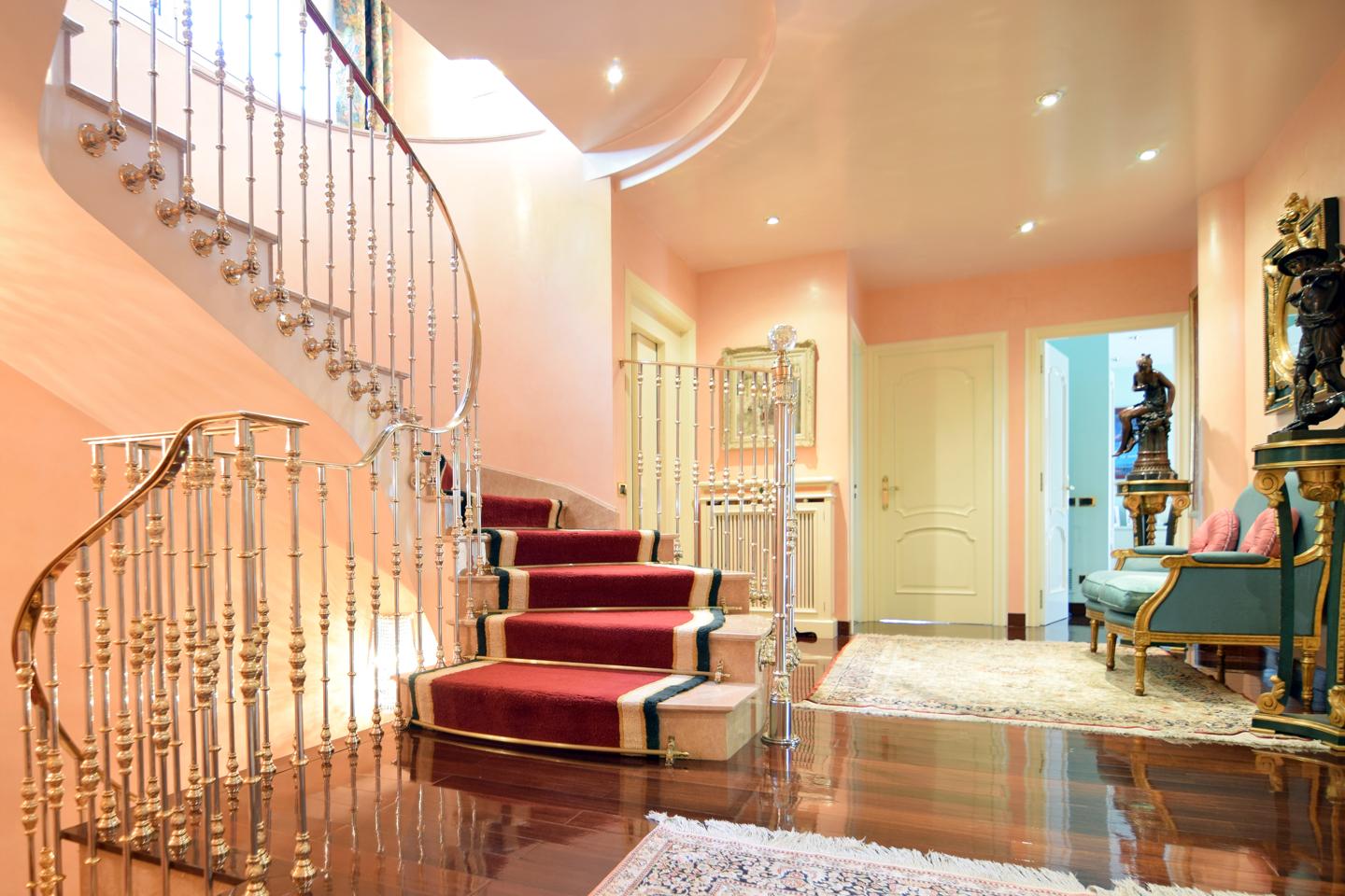 Espectacular chalet en la mejor zona residencial de Andorra la Vella, muy próximo al núcleo comercial. En una situación y con una orientación inmejorable, sol todo el día y vistas panorámicas a todo el Valle. Esta propiedad, se caracteriza por sus amplios espacios y por los acabados de alta calidad y cuenta con 907m2 distribuidos en 4 plantas. - Planta -1: Zona de garaje de 390m2, con capacidad para 13 coches aproximadamente, zona de trastero, lavandería, sala de máquinas con caldera de gasoil para el suministro de agua caliente y de calefacción, bodega, y una apartamento para el servicio. - Planta baja de 200m2, entrada principal con un majestuoso recibidor que nos conduce a un salón de grandes dimensiones que está dividido en dos ambientes, de unos 80 m2 aproximadamente, con chimenea y con acceso al jardín de unos 375m2 que voltea toda la casa. En la misma planta encontramos el comedor que también nos sorprende por sus grandes dimensiones. También encontramos una espaciosa cocina tipo office, con una isla flotante en medio y una mesa de 6 comensales para un uso más familiar. Todas las estancias tienen acceso directo al jardín. Para más comodidad en esta planta hay un baño de cortesía. - Planta 1ª: de 214 m2 consta de 4 dormitorios dobles muy amplios, todos ellos exteriores y con armarios empotrados. Uno de los dormitorios es tipo suite con zona de vestidor y baño completo con jacuzzi y ducha y con acceso a una terraza. Los 3 dormitorios restantes también tienen salida a balcón y gozan de sol durante todo el día, comparten dos baños completos con bañera. - Planta 2ª: de 102m2, destinado actualmente en sala de cine, con dos zonas independientes sala de música y despacho y acceso a una gran terraza donde disfrutar de las maravillosas vistas del valle.