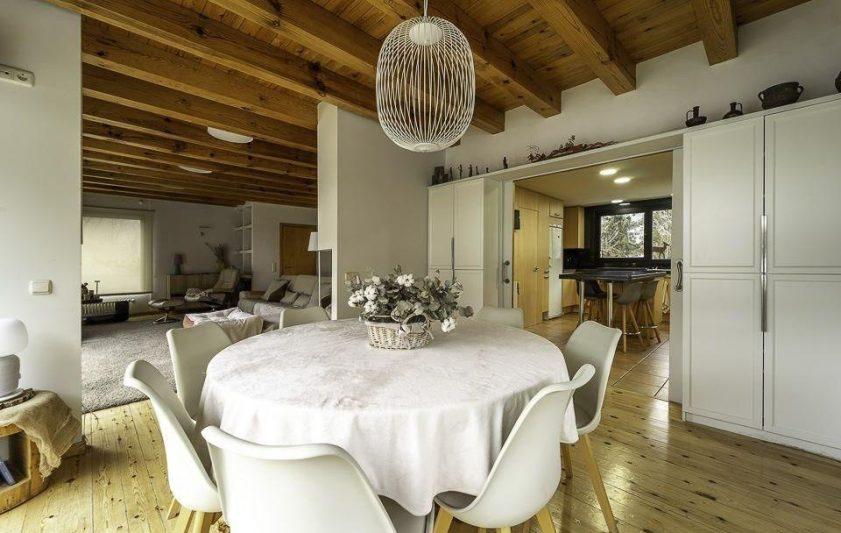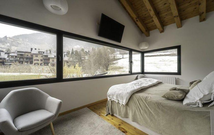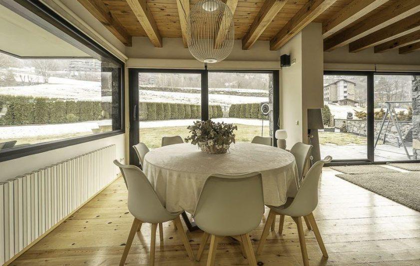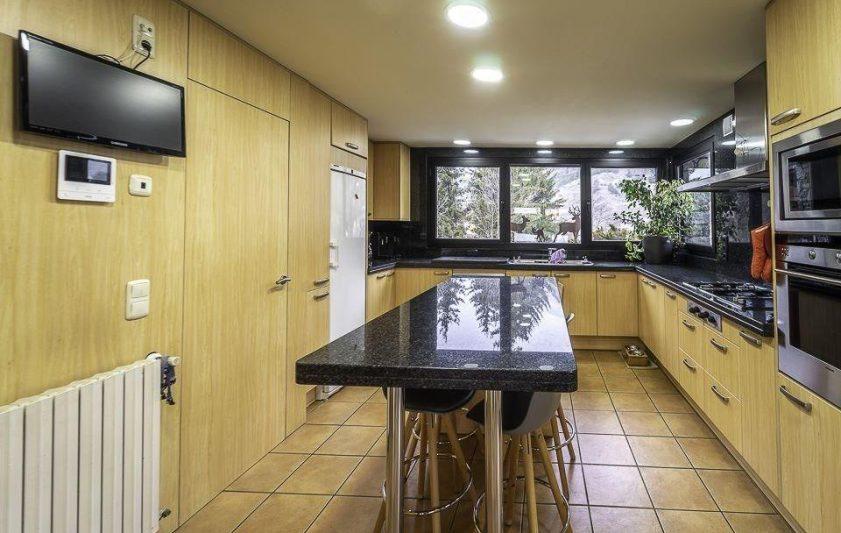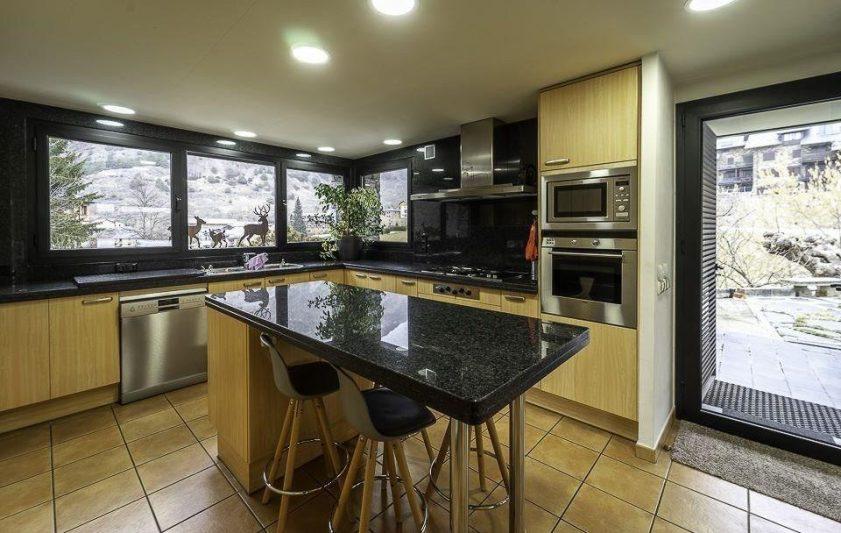 Presentamos una espectacular y elegante casa situada en medio de Ordino, en una zona muy soleada y tranquila, un inmueble construiío con materiales de alta gama y con un diseño contemporáneo de estilo nórdico moderno que atraerá la atención de cualquier visitante. La propiedad consta de 417,66 m2 de superficie habitable, distribuidas en dos plantas y cuenta también con una amplia zona de jardín. Se caracteriza por la luminosidad que encontraremos en cualquier rincón de la vivienda y por las generosas estancias y espacios comunes. La planta baja comprende una gran sala de estar, muy confortable, con chimenea y grandes ventanales, abiertos al jardín. Los techos llevan vigas de madera que crean un ambiente muy acogedor. En el otro extremo de la sala, se ubica la zona de comedor semi-abierta, igualmente con una magnífica vista panorámica del jardín, un lugar ideal para disfrutar de las reuniones de amigos y familia. La cocina, completamente equipada, comunica con el salón-comedor mediante puertas correderas e incluye una práctica despensa. En este mismo nivel, existe un aseo de cortesía y una habitación ideal para los invitados o para acomodarla como despacho. La primera planta engloba al resto de dormitorios: dos son tipo suite con baño privado y, una de ellas incluye además un vestiodr. Las otras tres habitaciones son dobles, de unos 11 m2 aproximadamente cada una, todas con techos altos que dan una sensación de mucha amplitud. Además, encontraremos otro baño completo con bañera y un lavadero muy útil y funcional. Por último, la propiedad dispone de un garaje gigantesco con capacidad para 4 coches y dos motos, un trastero y una bodega. Se trata de una fabulosa casa de alto standing, sinónimo de calidad y excelencia, es decir, la adquisición perfecta para vivir cómodamente en un lugar privilegiado.